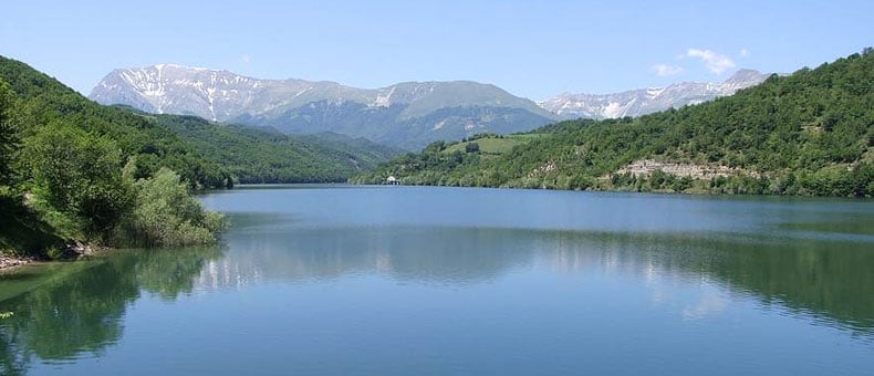 Gerosa Lake is a basin of artificial origin with a width of 400 meters and a length of about 2 km. Mainly fed by the Aso river which descends from the slopes of Monte Carrier down to the Adriatic, the lake defines the boundaries of three municipalities: Montemonaco, Montefortino and Comunanza.